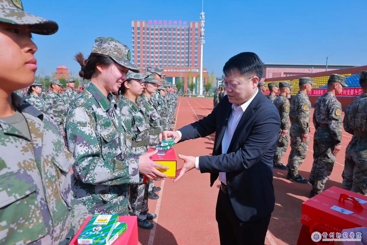 李新在慰问中指出,军事训练是学生大学生涯的重要一课,是我们落实立德树人根本任务、加强爱国主义教育和国防教育的重要环节。做好学生军事训练工作是全校共同的责任,各有关部门要搞好统筹协调,各系(院)要履职尽责,在训练资源保障、演训任务配合等方面满腔热忱给予参训教官有力支持,切实把这项工作抓紧抓好、抓出成效,真正发挥好学生军训综合育人功能,为忻师凝聚起矢志报国的强大力量。