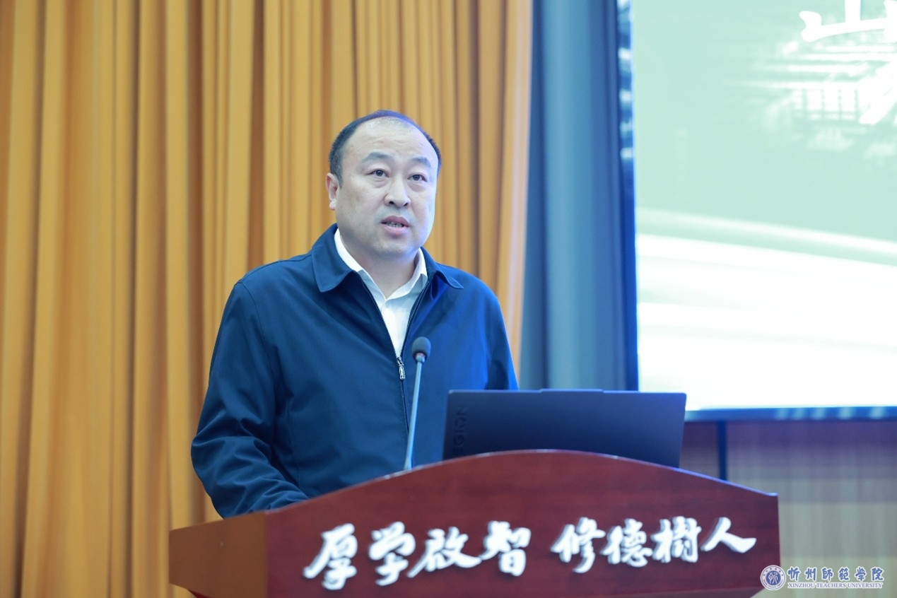 李新致辞,代表学校向出席活动的企业及行业代表表示热烈欢迎,对省教育厅、忻州市委市政府及地方有关单位长期以来对学校的关心支持致以衷心感谢,介绍了学校基本情况及中长期发展规划等。他表示,高校只有与地方经济社会发展同频共振,才能赢得未来。当前省委、省政府“转型创新、科技强省”战略部署与忻州转型升级推动高质量发展的实践,为学校深化校企合作、产教融合提供了前所未有的机遇。学校将以举办本次活动为契机,进一步明确应用型高校发展路径,持续优化学科专业结构,强化产学研平台建设及与地方政府、行业企业的战略合作,努力增强与地方产业需求的匹配度,与各方面携手推动教育链、人才链与产业链、创新链深度对接,为忻州乃至山西高质量发展提供更大助力。