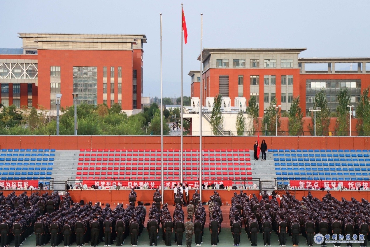 湛蓝天空下,忻师校园钟堂毓秀、学子欢腾,西操场上号角鸣响、旌旗猎猎,现场气氛庄重热烈。标兵就位,2025级新生共同等待着激动人心的时刻到来。
