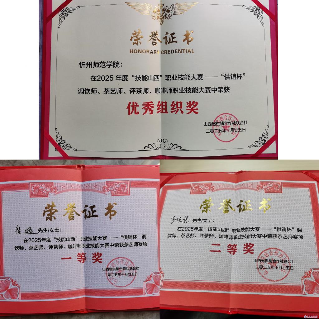 近日,“技能山西”职业技能大赛——“供销杯”系列赛事落幕。我校师生在比赛中表现优异,学校获“优秀组织奖”,旅游管理系教师崔嫱获得茶艺师赛项一等奖,其指导的学生李佳慧获得二等奖。