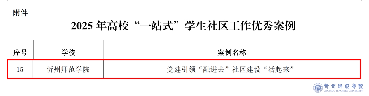 近日,山西省教育厅公布了2025年高校“一站式”学生社区工作案例评选结果。我校工作案例《党建引领“融进去”社区建设“活起来”》被评选为2025 年全省高校“一站式”学生社区工作优秀案例”。这是我校在深化“三全育人”综合改革、构建思想政治工作新生态方面取得又一重要成果,同时为全省高校“一站式”学生社区建设提供了可复制、可推广的实践范例。