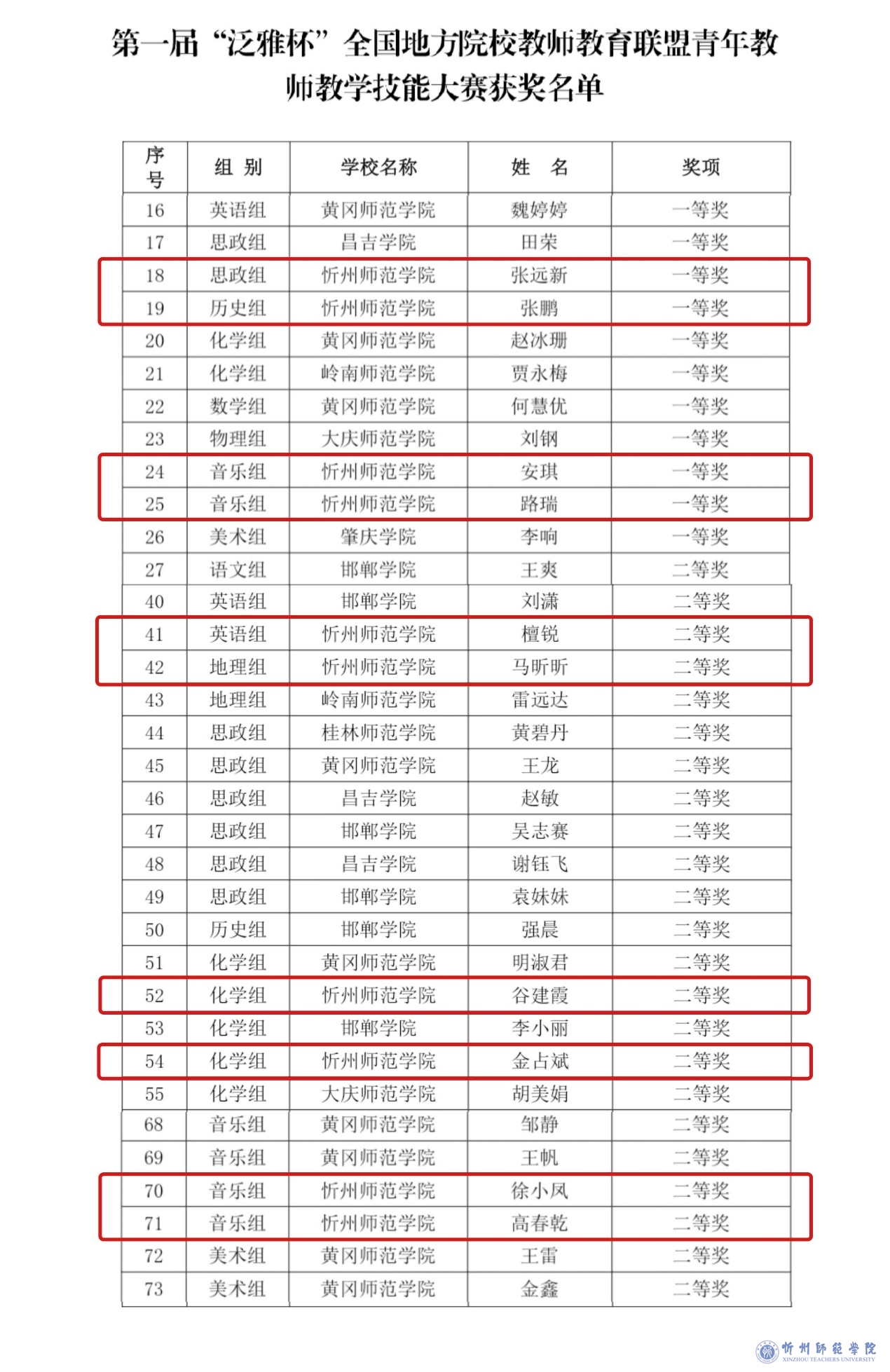 近日,在刚刚落幕的首届 “泛雅杯”全国地方院校教师教育联盟青年教师教学技能大赛中,我校选派的多学科青年教师团队发挥出色,一举斩获一等奖4项、二等奖6项。获奖项目涵盖思政、历史、音乐、英语、地理、化学等多个学科专业,充分展现了我校教师队伍扎实的教学功底和卓越的综合素质。