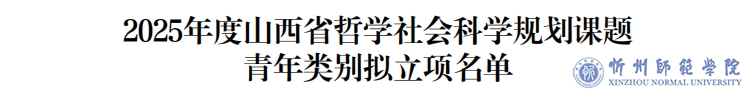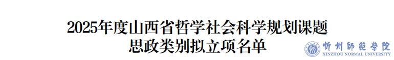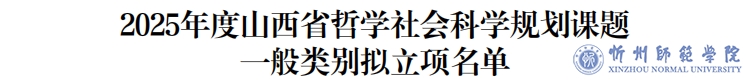近日,山西省委宣传部公示了2025年度山西省哲学社会科学规划课题拟立项名单,我校再传捷报,共获批23项哲学社会科学规划课题项目。其中重点课题2项,一般课题11项,青年课题8项,思政课题2项。