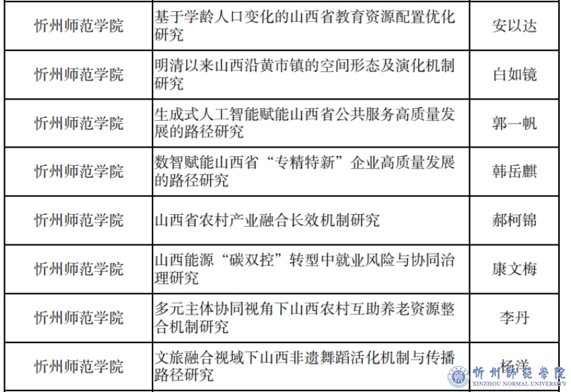 学校坚持将繁荣哲学社会科学作为战略要务,注重高水平研究成果的系统性积累与前瞻性培育,鼓励教师深耕学科前沿、深化理论创新,推动产出一批立足中国实践、彰显学术价值、贡献智慧力量的标志性成果。本次立项丰收,是学校加强有组织科研,在繁荣发展区域哲学社会科学事业中取得的最新成果。下一步,学校将结合2025年度山西省哲学社会科学规划课题立项工作,聚焦我省高质量发展的重大理论与实践问题,进一步发挥科研在学科建设和人才培养中的重要推动作用,加强对项目选题与论证过程的指导与服务,不断提升我校哲学社会科学研究的整体水平与影响力,努力为建构中国特色哲学社会科学贡献更多忻师智慧与力量。