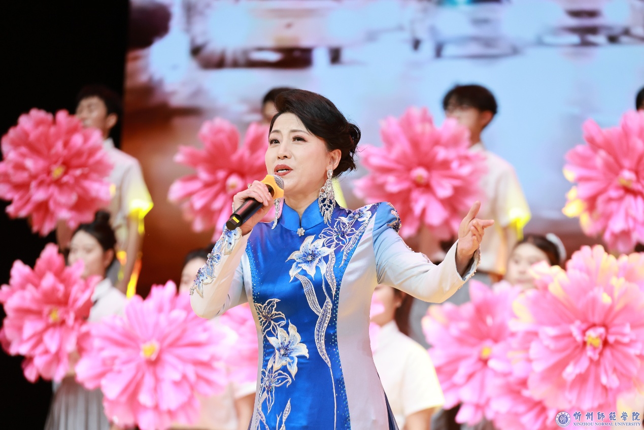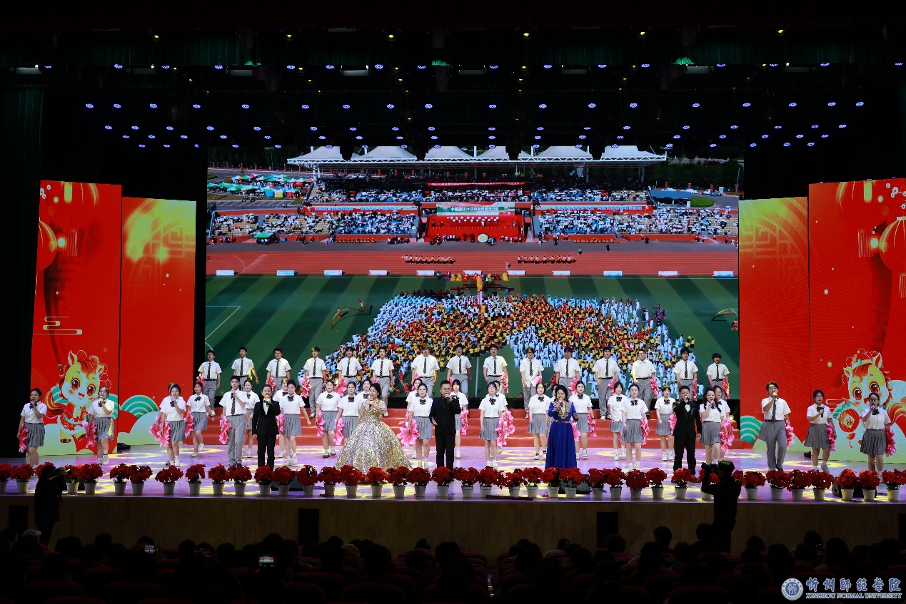 第二篇章“同启华章”,则铺展开一幅充满信心与豪情的未来画卷。歌伴舞《相亲相爱》生动呈现出全校上下团结友爱、其乐融融的共同体氛围。激昂的京剧联唱《打虎上山》《甘洒热血写春秋》,以国粹艺术的写意程式与高亢声腔,弘扬了攻坚克难,敢于斗争、敢于胜利的奋斗精神。创意快板《我爱我的家——忻师》用轻快的节奏细数校园新变化,引得全场共鸣。当《我的祖国》宏伟旋律响起,激昂的家国情怀与个体命运紧密交织,在每个人心中激荡起最深沉的共鸣。最终,晚会在象征着青春誓言与未来邀约的《请党放心 强国有我》歌声中达到高潮,这既是忻师声音的汇聚,更是意志与理想的宣誓。全体演员与观众情绪高昂,共同沉浸在对祖国、对忻师、对未来的无限祝福与憧憬之中,现场化作一片欢乐与希望的海洋。