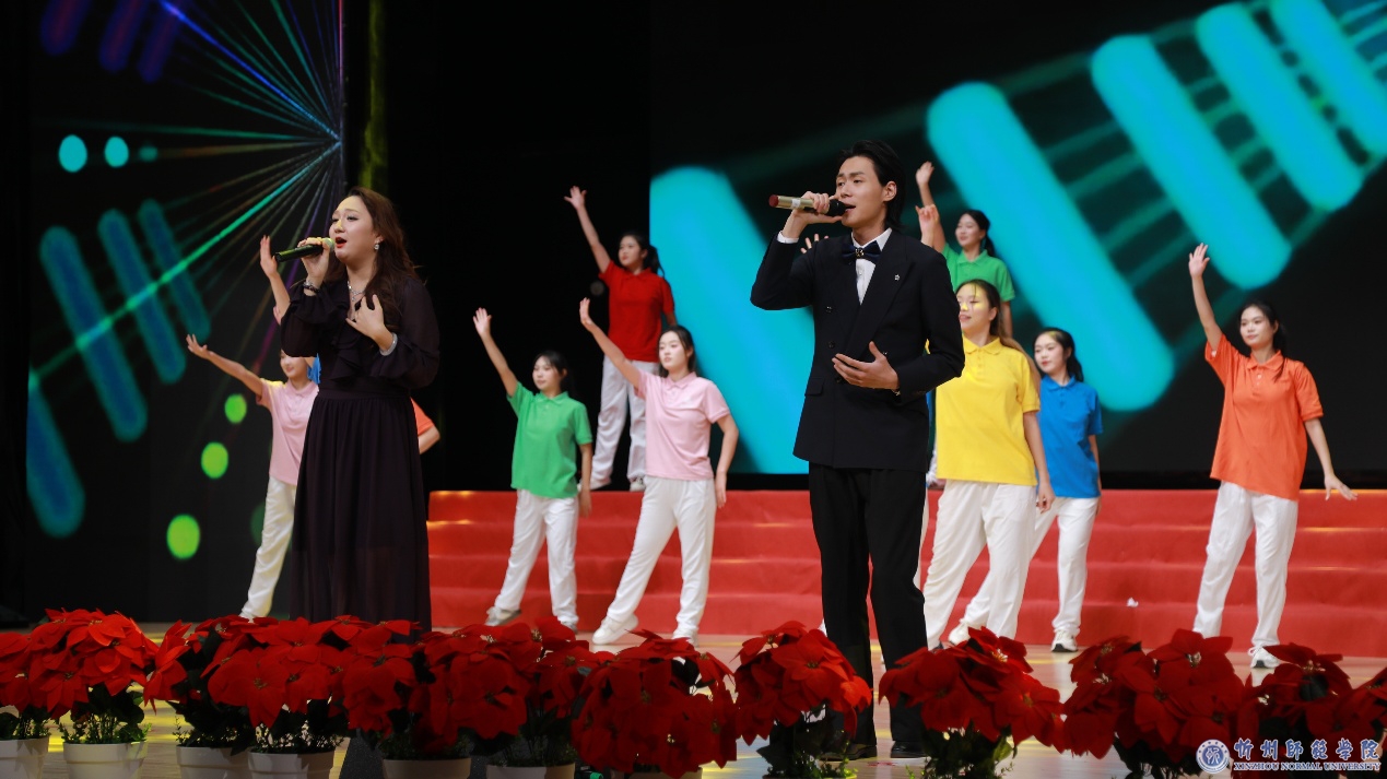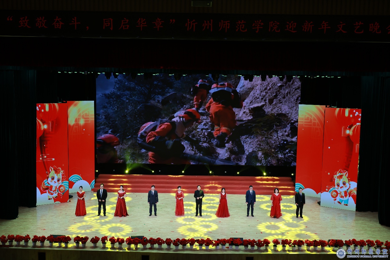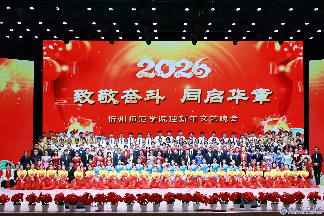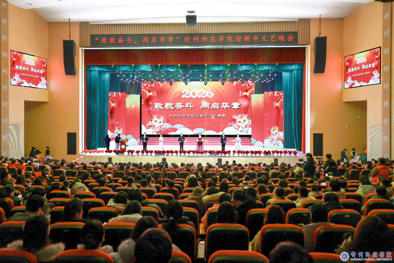 教师教育实训中心内处处欢声笑语。晚会现场华灯璀璨,报告厅舞台上方电子屏幕上“‘ 致敬奋斗 同启华章’忻州师范学院迎新年文艺晚会”格外醒目,师生们在激昂奋进的旋律与精彩纷呈的演绎中,共同回望硕果盈枝的奋斗2025,畅想充满希望的崭新2026。