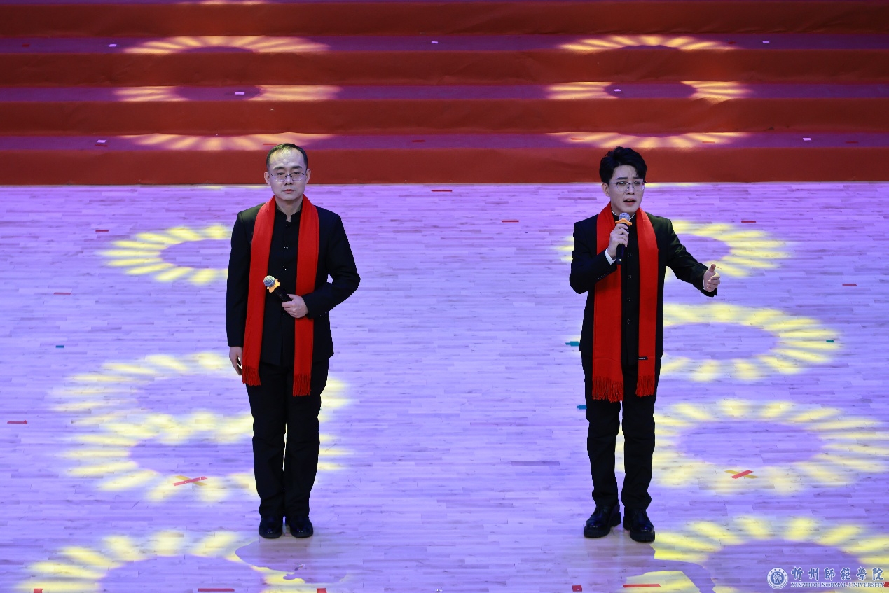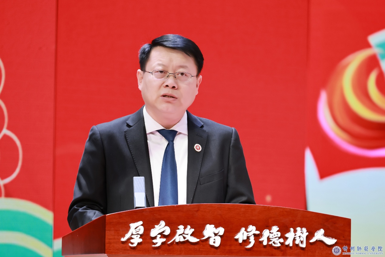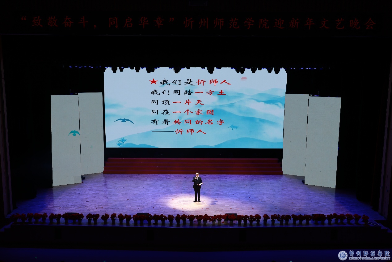 晚会伊始,校长李新发表了热情洋溢的新年致辞。他代表学校向全体师生员工、离退休老同志以及学生家长致以最诚挚的感谢并送上新年祝福,深情回顾了极不平凡、攻坚克难却又硕果累累的2025年,号召全体忻师人继续以坚如磐石的信念、只争朝夕的劲头,奋力谱写高水平应用型师范大学建设新篇章。