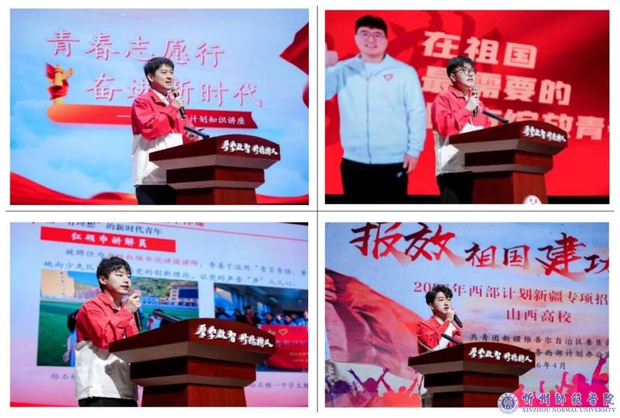 宣讲会上,山西省西部计划宣讲团成员田奇民、郭贵、赵宇鹏、梁佳乐依次发言,结合自身在西部基层的服务经历,分享了从校园走向边疆、从课堂奔赴一线的成长故事。宣讲团成员还就政策保障、服务内容、发展路径等学生关心的问题进行细致解答,现场互动热烈,掌声不断。