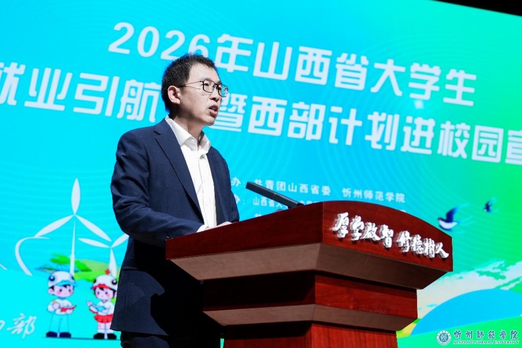 谭英杰致辞并宣布西部计划招募工作正式启动。他表示,西部计划是引导高校毕业生到祖国最需要地方建功立业的重要人才工程。忻州师范学院始终与国家教育事业同频共振,一代代忻师人扎根基层、服务西部的精神薪火相传。希望忻师青年以信仰为帆,怀揣赤子之心奔赴西部、带着专业所学扎根基层、秉持实干精神服务群众,让青春在祖国最需要的地方绽放绚丽之花。校党委将在政策保障、岗位对接、跟踪服务上持续发力,为有志青年投身西部火热实践保驾护航。