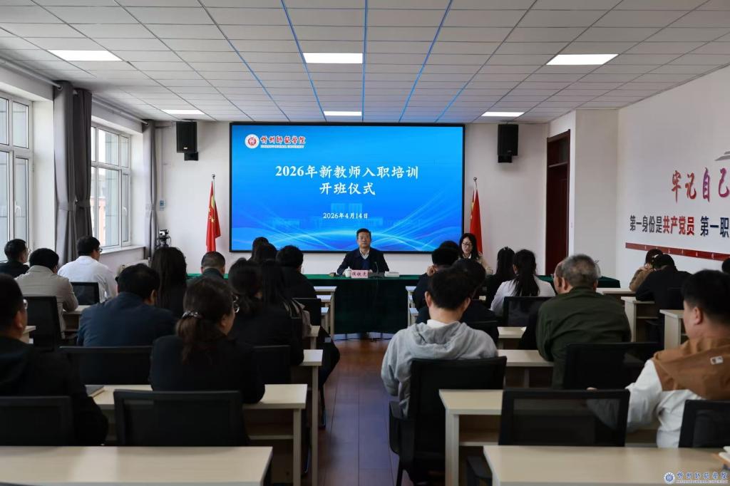 4月14日,我校举行2026年新教师入职培训。副校长侯铁虎出席开班仪式并作动员讲话。近一年新入职教师参加。